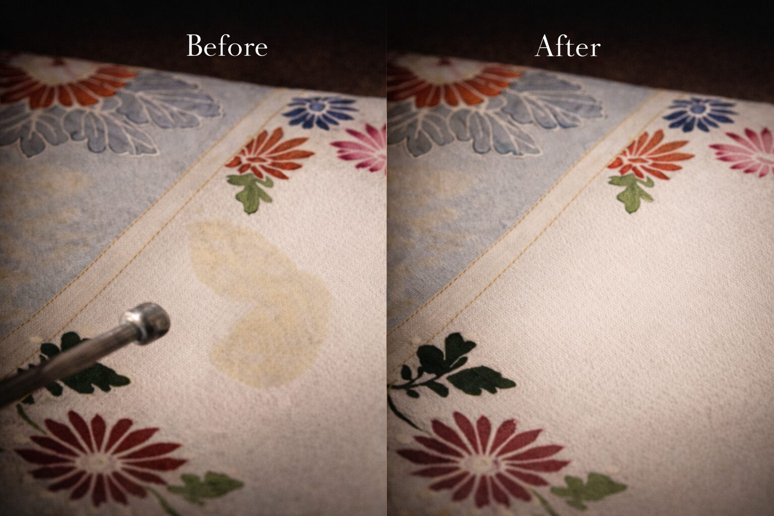 当店では、皮脂汚れをスッキリ落とす「丸洗い」から、頑固なシミ抜き、そして着物を解いて新品のような風合いを蘇らせる「洗い張り」まで、専門の職人が一着ずつ丁寧に向き合います。