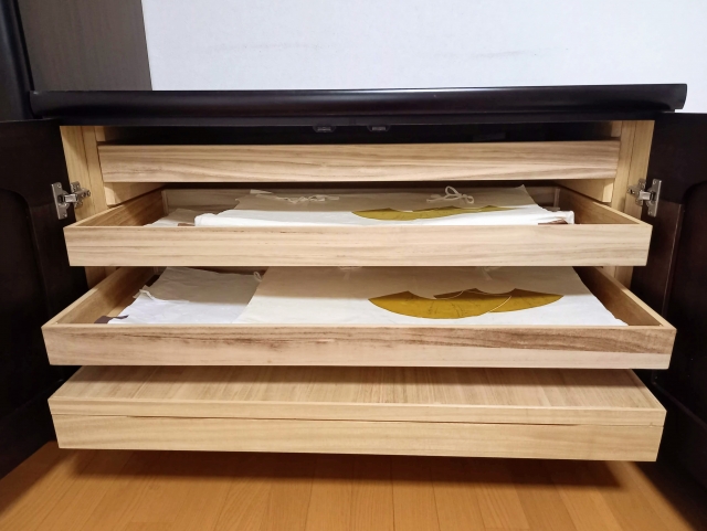 当店の「出張箪笥整理」では、経験豊富なスタッフがご自宅へ伺い、一枚一枚の状態を確認しながら、種類や格(TPO)に合わせた仕分けを行います。